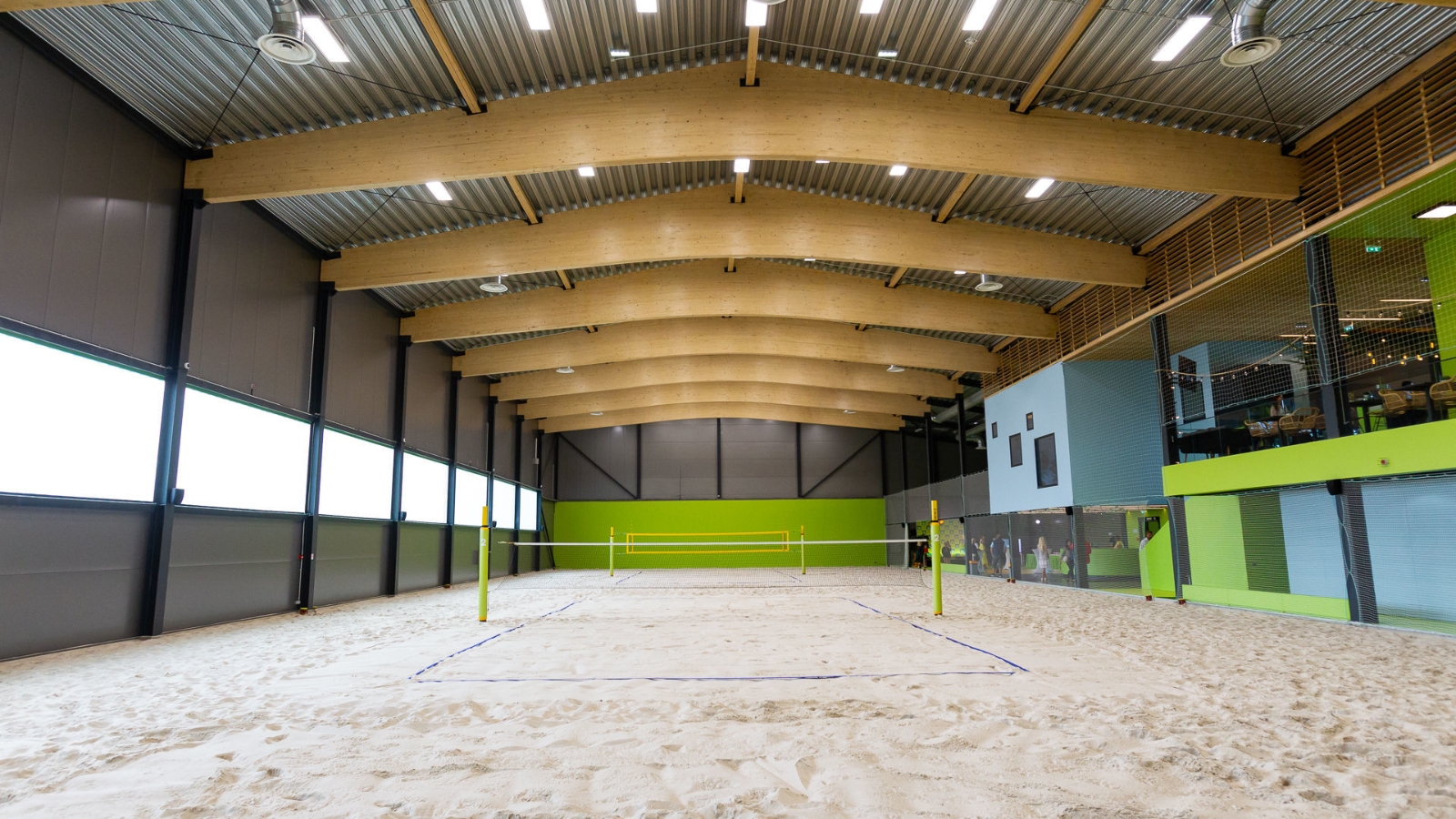 Яңа спорт комплексы пляж спорт төрләре: волейбол, футбол, регби, гандбол белән шөгыльләнү өчен билгеләнгән. Өстәмә рәвештә спорт аренасы пляж теннисы, бадминтон, баскетбол, футбол һәм фрисби өчен файдаланылырга мөмкин. Бина ике каттан тора, аның гомуми мәйданы якынча 5,2 мең кв. м.